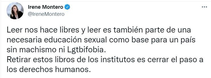 PERO LO PEOR ES LO QUE ESTÁ HACIENDO CON LA SOCIEDAD. IGUALDAD DICE. PERO SI YO DUDO QUE SEPA ESCRIBIRLO… CON LEYES UNAS VECES ABSURDAS, OTRAS INNECESARIAS Y LA MAYORÍA MAL REDACTADAS. POR NO ENTRAR EN EL CONTENIDO. Y QUE CONSIGUE?? QUITAR DERECHOS A MUCHOS, A COSTA DE OTRAS. DANDO TOTAL LIBERTAD PARA DECIDIR SOBRE CUALQUIER HOMBRE. CON SU PALABRA ÚNICAMENTE OJO.