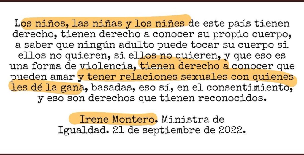 Y luego para esta trastornada los niños tienen la autonomía para decidir sus relaciones sexuales con quien quieran… Junta ambas cosas… ESTAMOS LOCOS O QUE???
