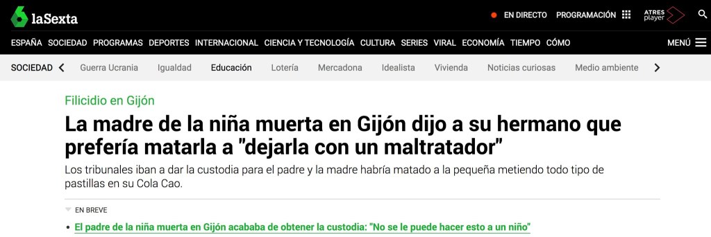 Y, LE JODA A QUIEN LE JODA, ESTAS COSAS PASAN. Y LO PEOR NO ES ESO, LO PEOR ES QUE DESDE EL ESTADO SE LEGITIMA. SE ESTA IMPONIENDO UNA MISANDRIA ABSOLUTA MEDIANTE LEYES REDACTADAS E IMPUESTAS POR RETRASADOS MENTALES. EGOÍSTAS SIN ESCRÚPULOS NI VERGÜENZA. AUTÉNTICOS CRIMINALES CAPACES DE MATAR DE HAMBRE AL PAÍS MIENTRAS LO EXPRIMEN Y HUNDEN A LA VEZ QUE SE CAGAN EN EL. ERA POCO DESCARO? PUES ENCIMA SE INDIGNAN, EXIGEN RESPETO… PERO ESTO QUE ES? QUE VERGÜENZA Y ASCO ME DA.