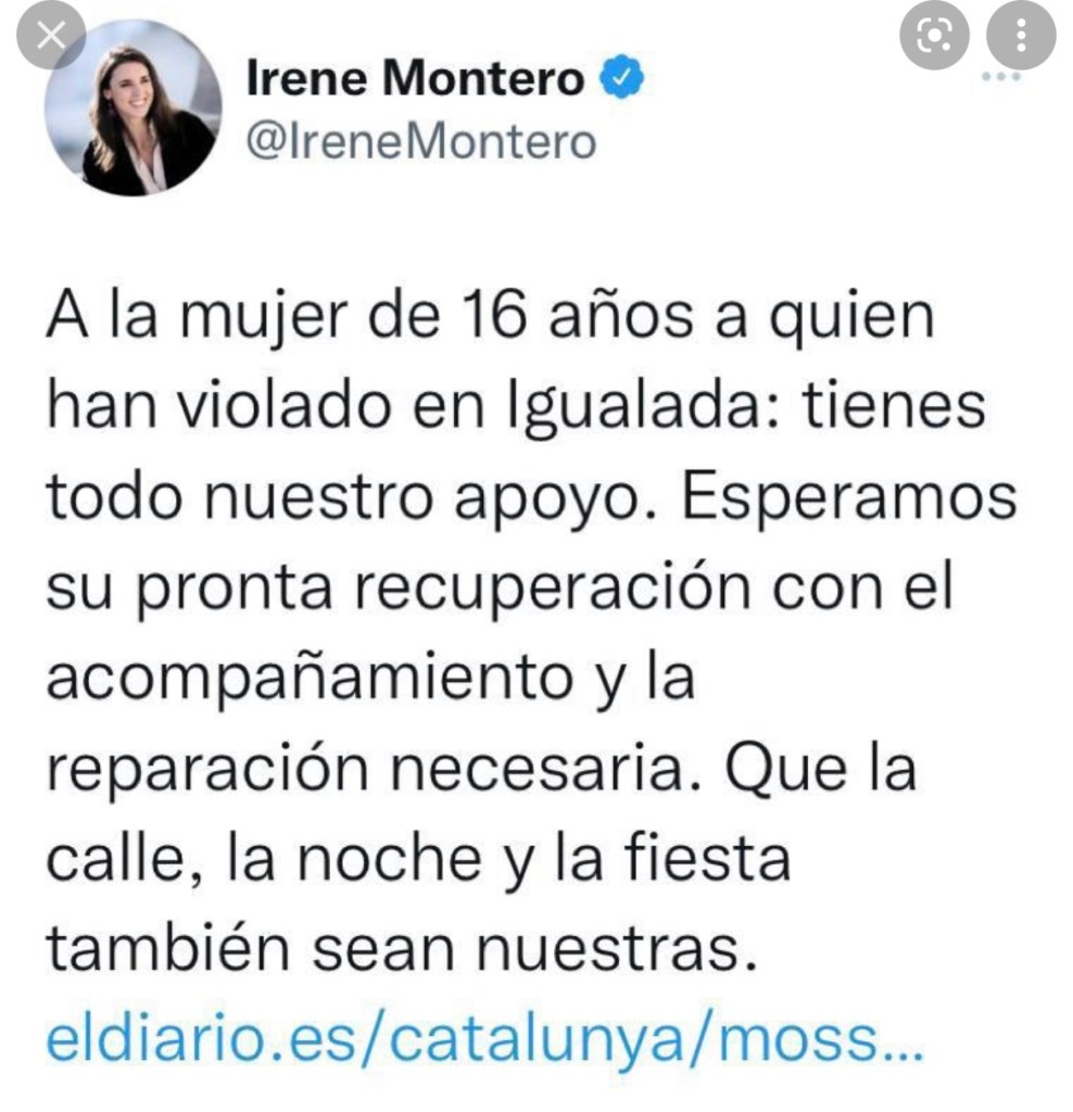 Esto para el que no se acuerde de la reparación que soluciona todo a la niña violada y abandonada a la muerte en Igualada. Que se salvo gracias a un hombre… será el único que se salve para la lumbreras esta…