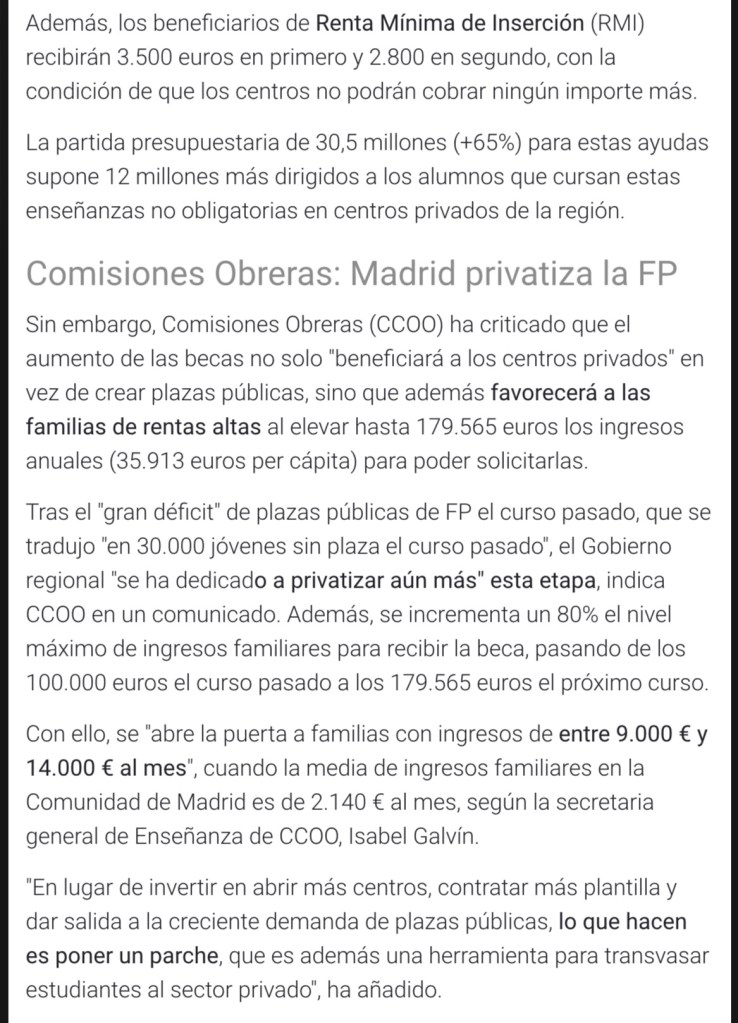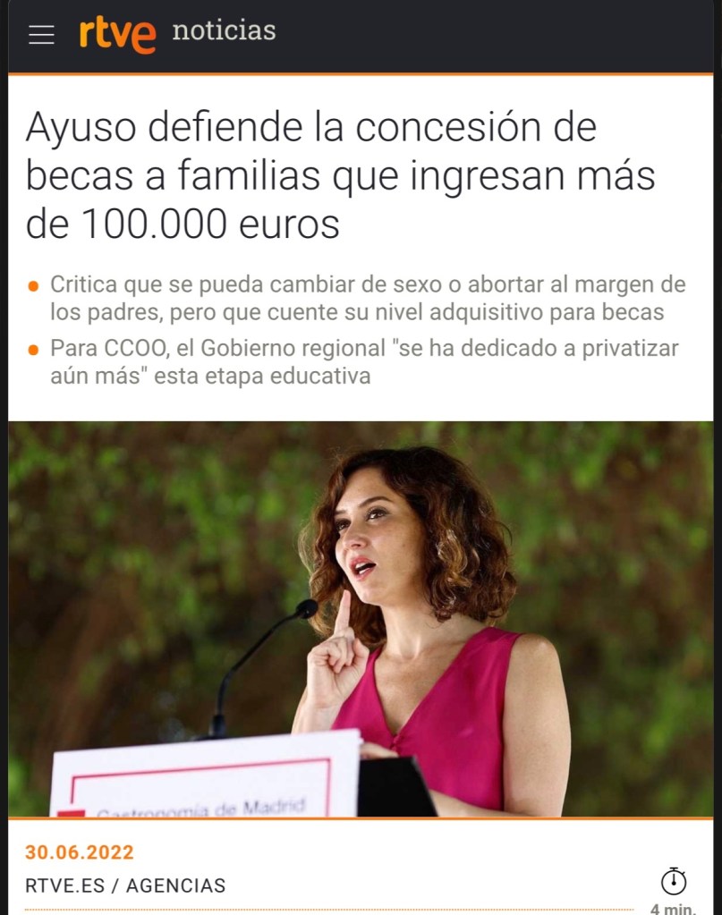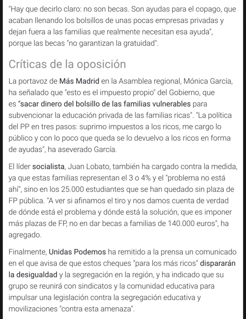 BECAS PARA ESTUDIAR EN CENTROS PRIVADOS PARA FAMILIAS CON INGRESOS SUPERIORES A 100.000 EUROS… EN PRIMER LUGAR ME PARECE INMORAL E INJUSTO. SOBRE TODO CON LA SITUACIÓN A LA QUE NOS HAN LLEVADO AL RESTO DE “MORTALES” (LOS DE LA “CLASE MEDIA”…) QUE RESULTA QUE HEMOS QUERIDO VIVIR POR ENCIMA DE NUESTRAS POSIBILIDADES…