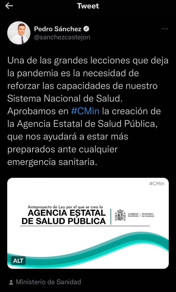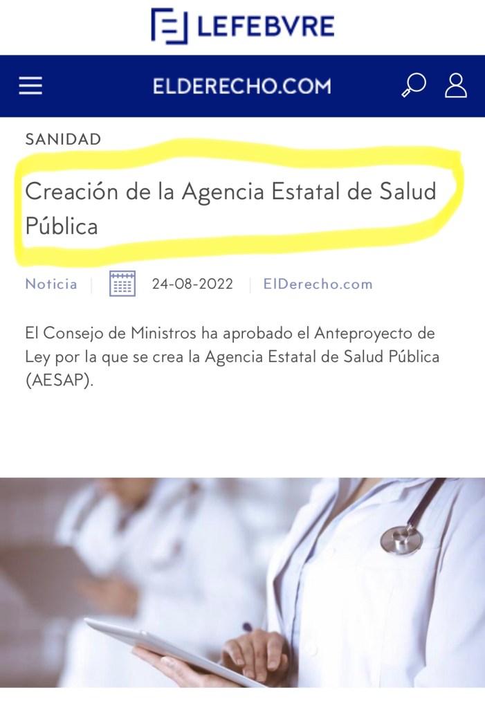 AGENCIA ESTATAL DE SALUD PÚBLICA… de nueva creación claro, como sobra el dinero…¿en serio? Solo les falta colocar al frente a Fernando Simón…
