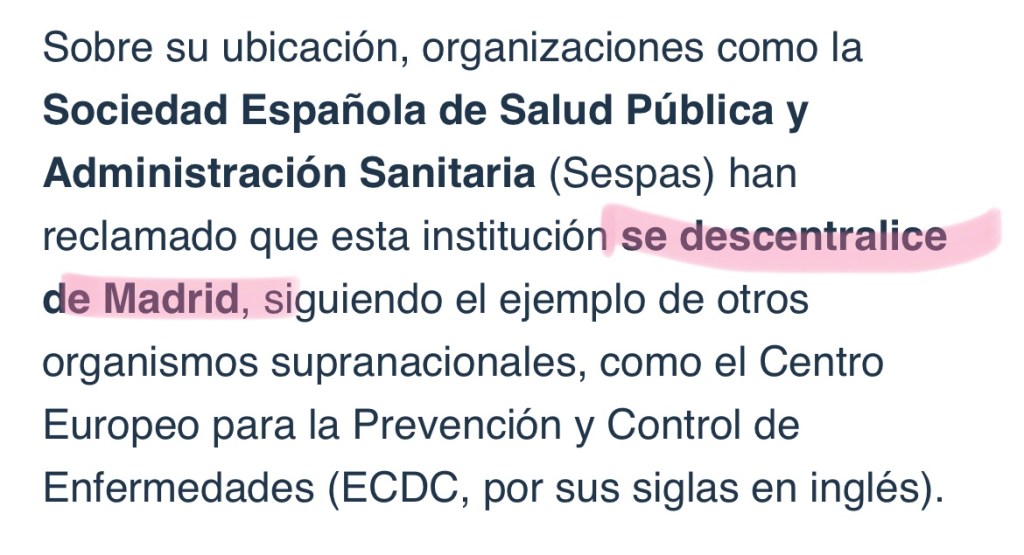 • SI CONTINUAS LEYENDO VERÁS QUE NO HAN DECIDIDO LA UBICACIÓN SE LA AGENCIA… PERO SI VAN AVISANDO DEL INTERÉS EN “DESCENTRALIZARLO” DE MADRID… 🤔🤔🤔
